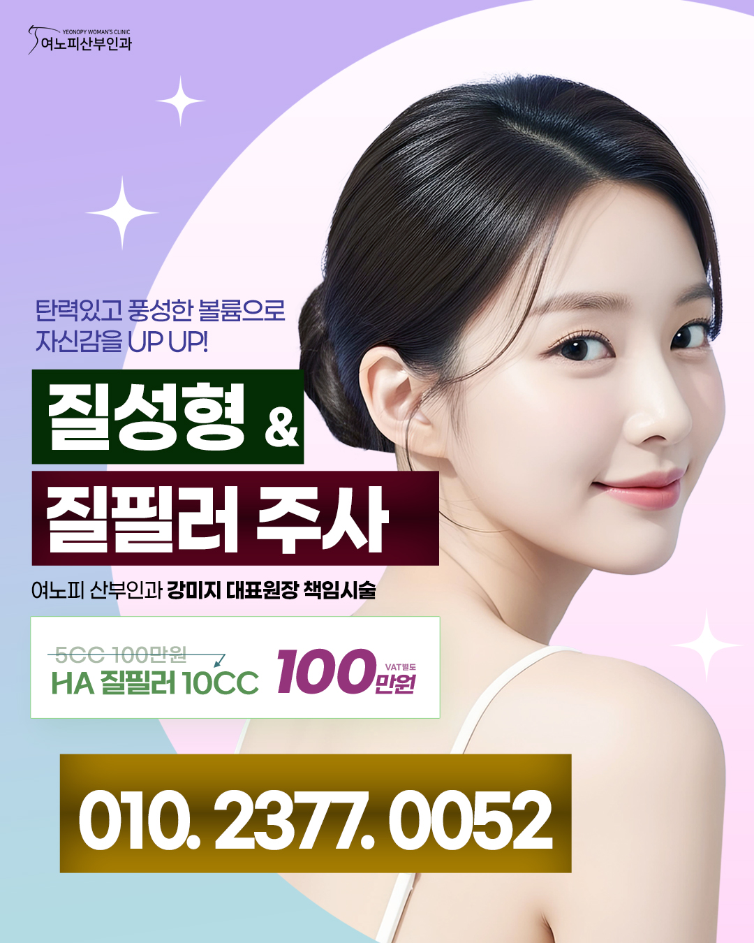 저희 여노피산부인과에서는 기존 5cc 100만원 HA 필러성형을 1+1 이벤트가격 10cc 100만원( vat 별도) 금액으로 질 내부의 볼륨업 시술을 하고 있습니다.